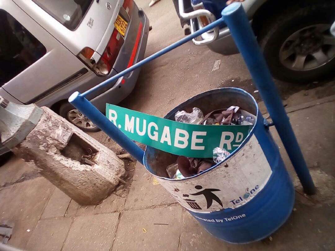 Ainsi à Harare, dés les premières heures du coup d’état, on déboulonne dans une ambiance de fête populaire les plaques du boulevard (en fait Road) R. Mugabe pour les piétiner et même les écraser, puis les jeter.